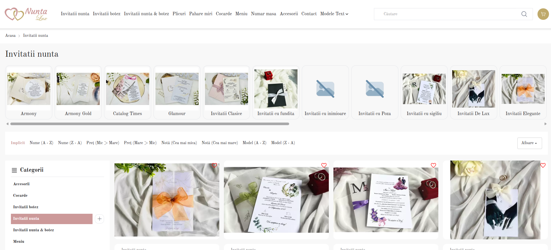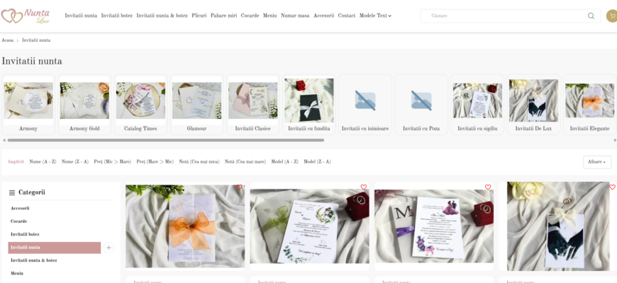 The wedding invitations page from Nunta-Lux is a practical and well-stocked place for browsing invitatii de nunta. The broad variety of styles, the easy filtering and the personalization options make it a solid choice for couples who want real, printed invitations without too much hassle. The page does feel crowded at times, and clearer review signals or better management of unavailable items would improve the experience. But as a working tool for choosing wedding stationery, it gets the job done and gives couples more than enough material to find something that matches their wedding style, budget and personality.